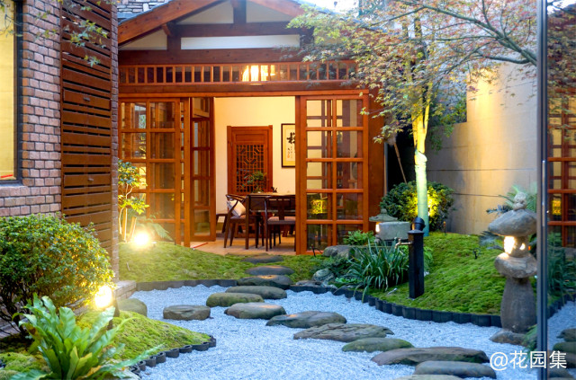 一面是真实水景的灵动,一面是枯山水的禅意,特别适合坐在庭院里品茶聊天赏景。