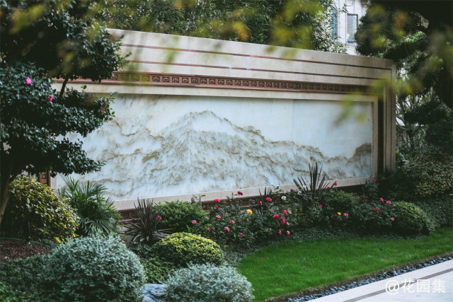整体以山水画卷为蓝本,近处以水帘营造朦胧之美。