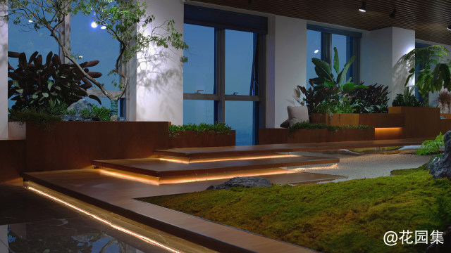 可能会有室外植物室内用,现代化的雾森设备,营造具有诗意的禅意的氛围,让办公不再沉闷。