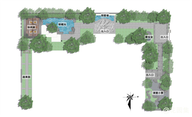 花园采用的是新中式风格 ,设计抛去了传统中式中精美复杂的花纹,采用了简约大气,简洁硬朗的直线条。