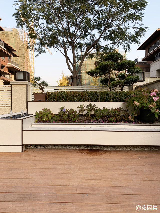 侧院与南院存在一米多的高差,台阶的存在是必然的,但是我们想让这台阶更有意思一些,于是我们把台阶变成台地,绿色的整型灌木与台阶结合在一起,形成了别有风格的景观。
