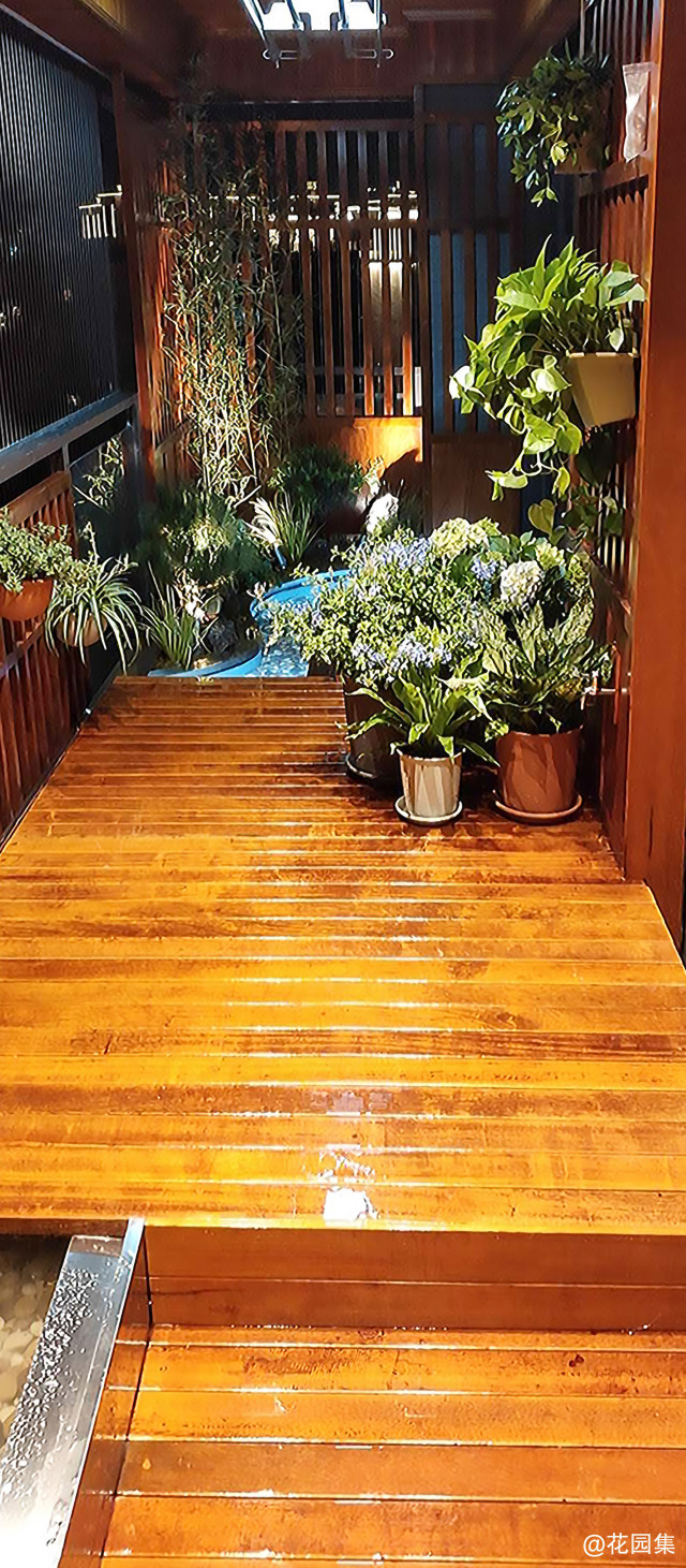 高品质的菠萝格也使得花园呈现出高级的质感,精心搭配的植物在菠萝格的衬托下营造出其特有的感觉。