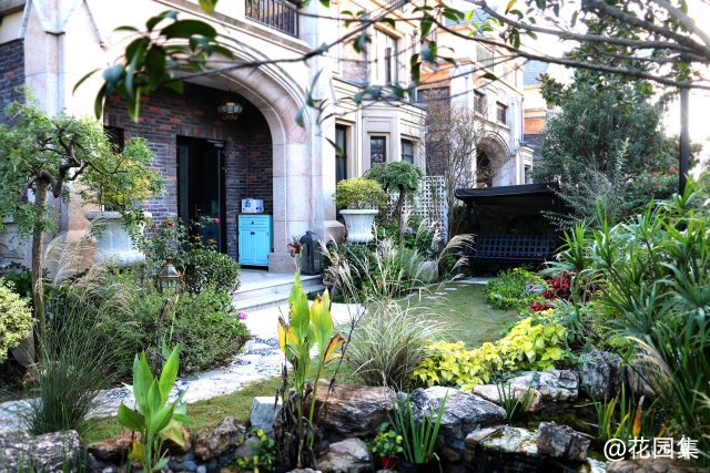 水边繁花围绕,景石点缀,坐在休闲木平台边,水声、风声、花香,舞动满园。营造出惬意温馨的别样花园。