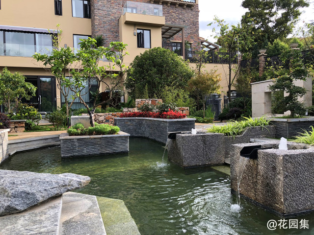 庭院空间小而精致,营造亲密空间,院内苗木选型精致。圆形水钵以不锈钢仿形而制。