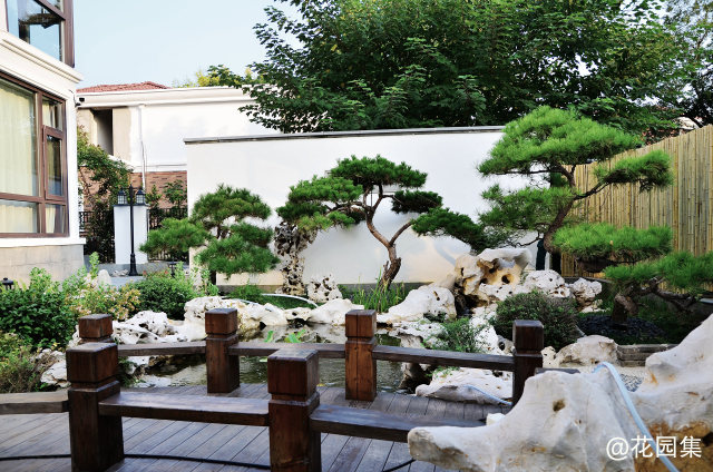 香树湾花园别墅,属于欧式别墅社区,半开敞式庭院,对于传统中式园林的营造是不小的挑战。“庆幸”的是,业主已经把原别墅整个改建成了粉墙黛瓦的有中式韵味的建筑,让我们后期无需纠结庭院与建筑的搭配问题。