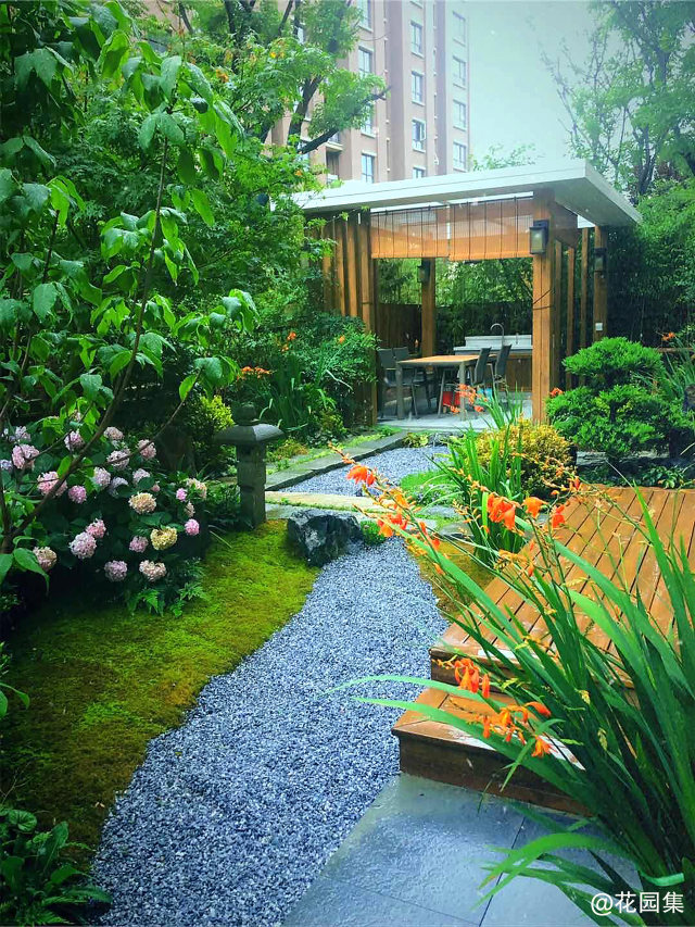 这座花园位于合肥信达公园里,建筑风格为英伦风。花园风格整体定义为日式,在局部区域结合建筑风格,搭配英式种植,体现现代风格。花园呈L型,环绕建筑展开,设计师结合现状场地,运用专业知识,对花园进行合理地规划,意在营造日式禅意景观效果。