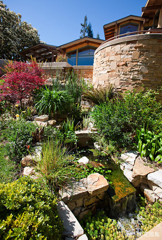 旧金山现代中型全阳光侧庭院混凝土摊铺机车道的设计项目。
