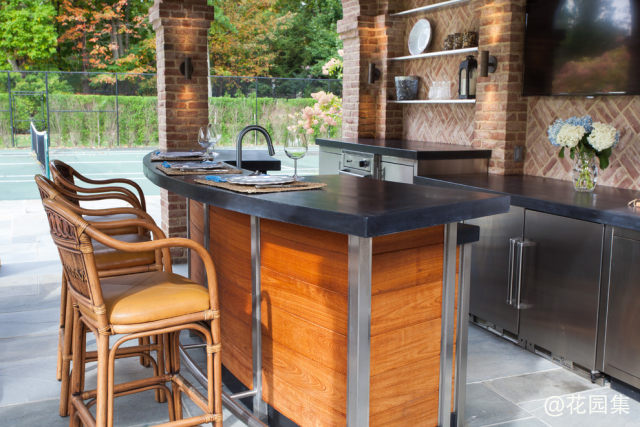 纽约的大型传统后院瓷砖和长方形重叠泳池屋设计项目