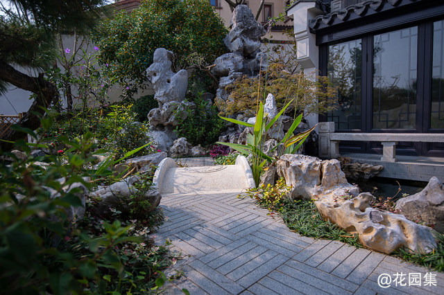 在营造的过程中,为了体现最初的设计构想,在营造过程中不断的深化设计,在假山堆砌的过程中,相石很重要,卢府的太湖石有很多有寓意的节点景观,入口的“神猴迎客”、水景的“飞龙在天”、“神鹿奔日”、“仙龟探海”等等都是在营造过程中二次设计的结果。包括在盆景选择上也是,其中一棵红花檵木盆景的树根极像“仙猴抱日”的瑞像。这就是中式园林的精髓-师法自然,步移景异。