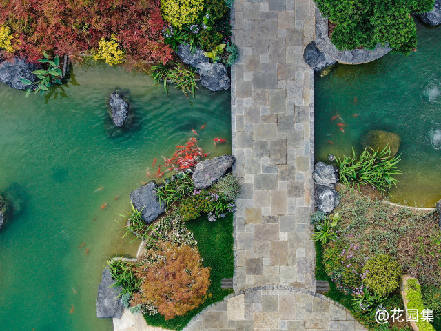 园中最为灵动的,莫过于那满池象征着吉祥与幸福的锦鲤,大和锦,黄金锦,三色锦等鱼儿在鱼池中自由自在地撒欢,生命的丰腾在这一刻悠然绽放。同时,在锦鲤池庭院的打造中,融入日式庭院的禅意意境及欧洲自然派园林的造园手法,把生态盎然充满自然意趣的花花草草和东方的禅境巧妙进行融合,既能让感官享受色彩明艳带来强烈的生活的气息,又能让人在清泉流水、禅意幽境中洗去尘世的喧嚣,让心灵回归自然平和。