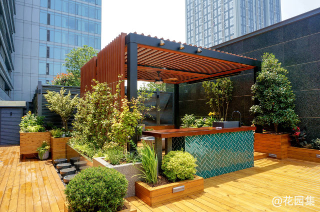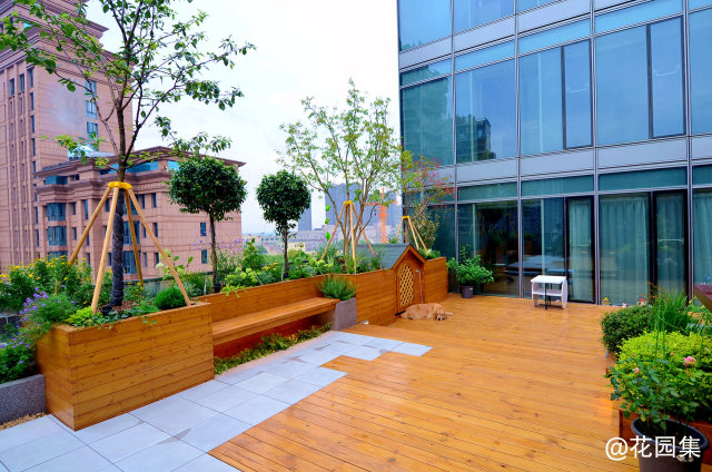 该屋顶花园位于杭州城北一新兴楼盘中,为正北朝向花园,闹中取静,闹中取景,不知不觉这个花园也融入进了城市,成为了众多景色中的一部分。