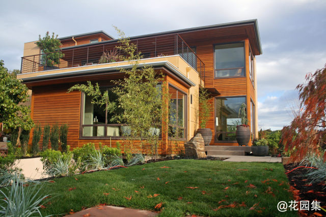 一块巨大的丁香青石板连接到前门。晚上,这座桥由线性LED灯照亮。